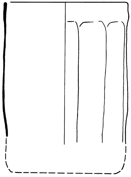 | 4b vorm | cilindrische beker met verticaal of naar rechts- of links draaiend ribbelpatroon, opgestoken bodem met pontilmerk |