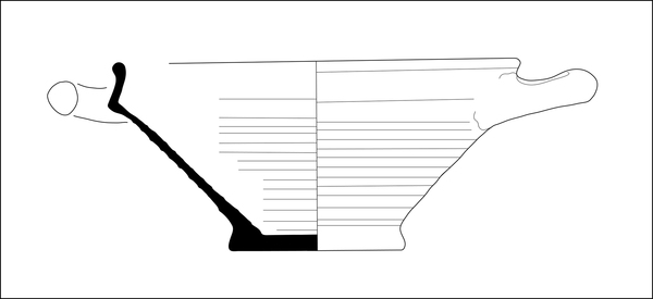 | 4b | kom met scherpe buikknik met ribbel, iets naar binnen gebogen wand met rechte rand, standring |