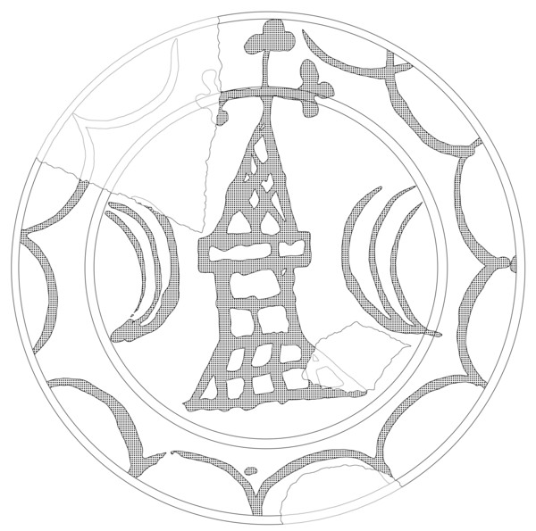 | 5c decoratie | slibversiering: toren van Barbara met drie slibboogjes aan weerszijden en slibboogjes op de vlag |