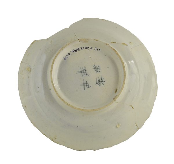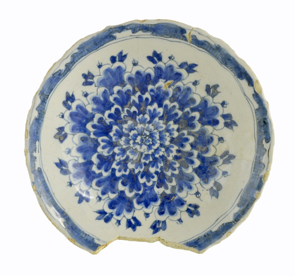 | 5c | centraal groot rozet, golvende rand met blauwe decoratie; op onderzijde vier Chinese tekens blauw |
