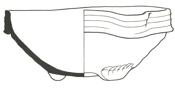 | 4b | afgeronde kom met sterk geprononceerde brede kraagrand, lobvoeten |
