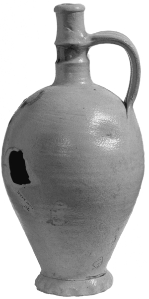 | 4b vorm | P-kruik: zeer bolle fles met hoge hals met ribbels, standring |