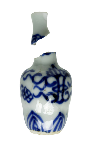 | 5c | blauwe decoratie, onderaan vlammen onderglazuur blauw |