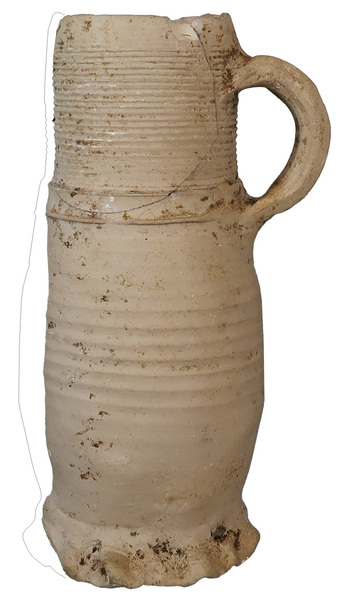 | 4b | lage bekervormige kan met kraag op de halsaanzet, iets verdikte hals, rechte rand, op standring |