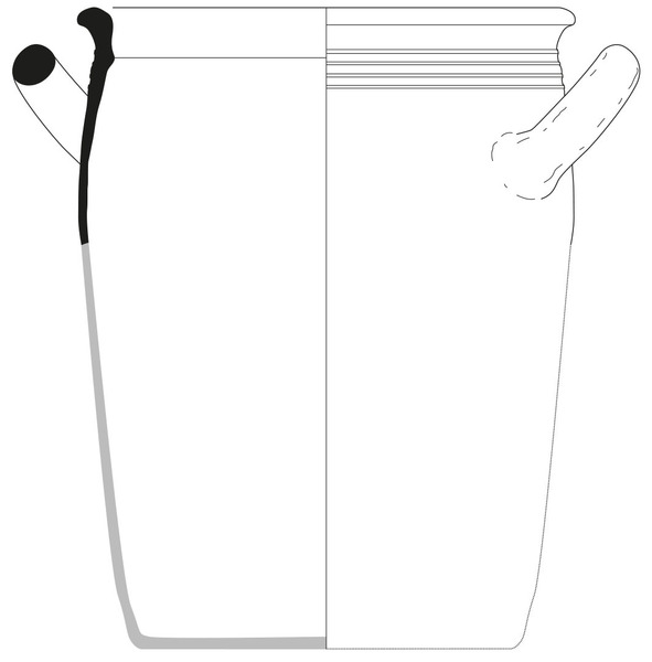 | 4b | hoge tonvormige pot met uitgebogen verdikte en aan de bovenzijde afgeplatte rand, ribbel onder randaanzet, standvlak |