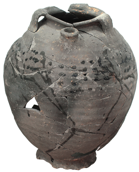 | 4b vorm | hoge pot met licht gewelfde buik, haaks naar buiten geknikte rand, aan buitenzijde aangedrukt, standring (Sanke randtype 2.5) |