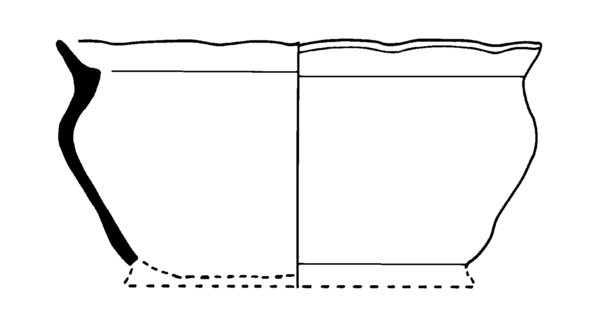 | 4b vorm | pot met knik op overgang wand-schouder en naar buiten geknikte rand met dekselgeul, standring |