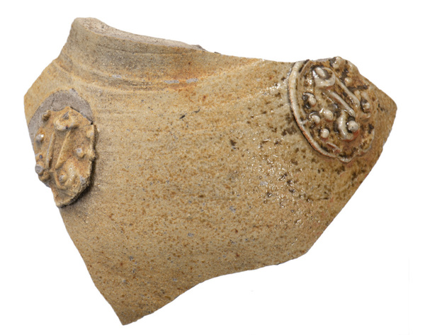 | 5c | twee ronde appliques met fallussymbool en stippen |