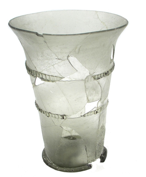 | 4b | cilindrische of lichtconische beker met uitstaande lip, met twee horizontale geribde draden, opgestoken bodem met pontilmerk, voetring |