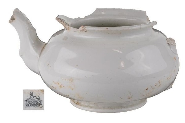 | 4b | bolle theepot met naar buiten geknikte rand, geprofileerde tuit, standring |