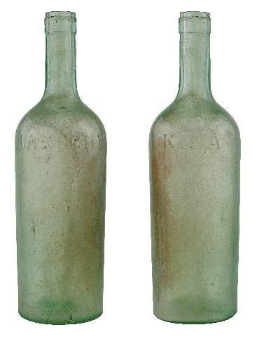 | 4b | slanke cilindrische wijnfles met lange hals, afhangende afgeronde schouder, afgewerkte platte draad onder de lip, vormgeblazen, licht opgebolde bodem |