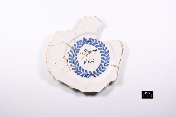 | 5c decoratie | blauwe beschildering: spreuk: SNIJD BROOT |