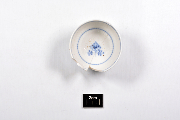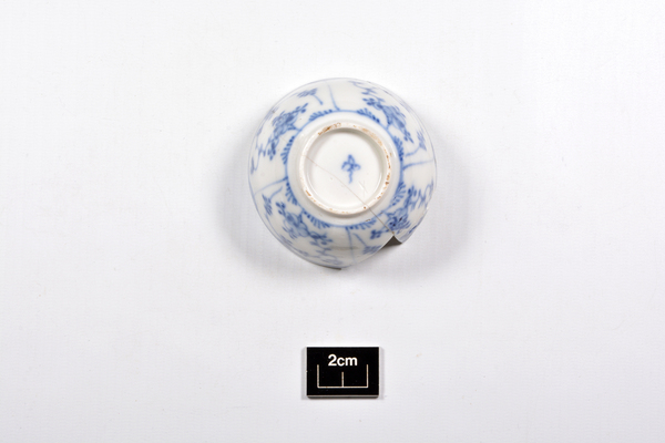 | 5d diversen | onderkant ingekraste X en blauw geschilderde plant met drie bladeren |