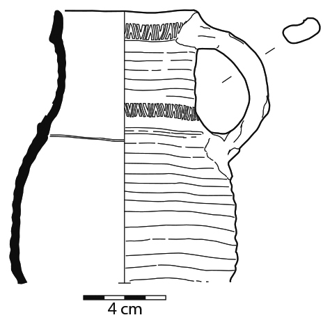 | 4b | bolle kan met vrijwel cilindrische hals en hoge kraagrand, met door twee ribbels afgezette gladde zone op schouder |