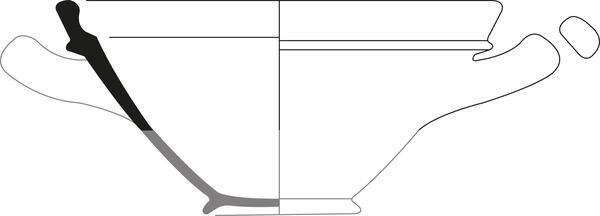| 4b | wijde ronde test / kooltjespan met platte zijde, knik in wand, uitstaande kraagrand, poten |