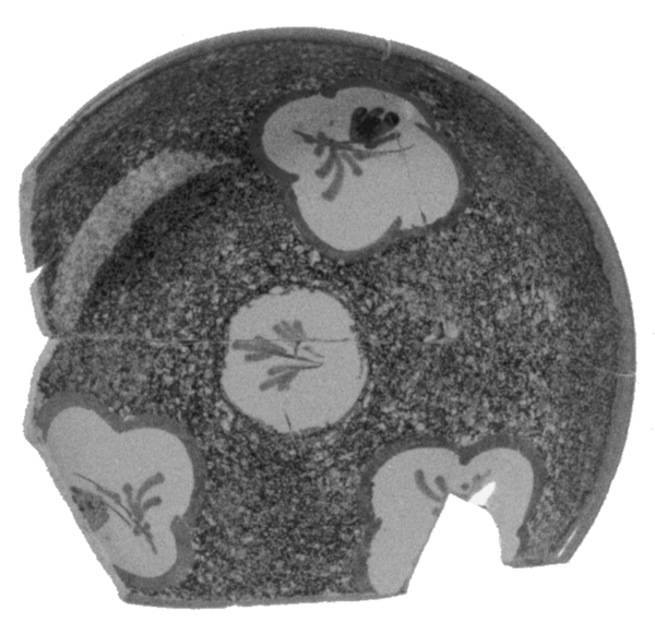 | 5c | inwendig: medaillons met groene en zwarte bloemen in paarse wolk inwendig polychroom |