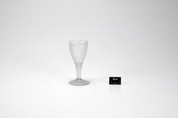 | 4b | toegebogen trechter- of eivormig kelkglas met dikwandige bodem overgaand in rechte massieve stam, ook met luchtbel of spiraalvormige draadversiering, schijfvormige voet met pontilmerk |