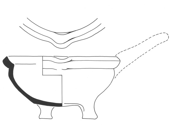 | 4b | bolle steelkom, kleine geknikte rand met dekselgeul, poten |