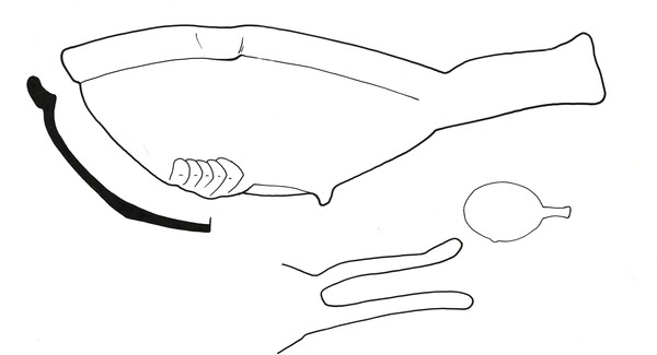 | 4b | bolle steelkom, kleine geknikte rand met dekselgeul, poten |