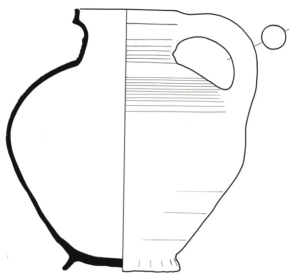 | 4b | bolle kan met hoge schouder en cilindrische hals, kraagrand met dekselgeul, standring |