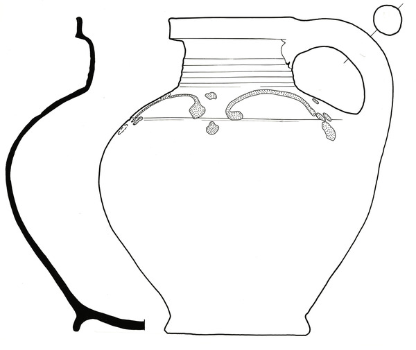 | 4b | bolle kan met hoge schouder en cilindrische hals, kraagrand met dekselgeul, standring |