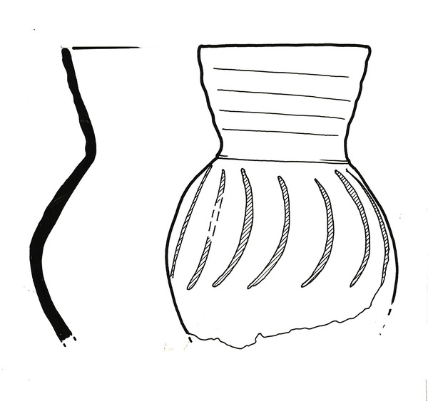 | 5d | pottenbakkersafval, imitatie Siegburg trechterbeker, bodem ontbreekt |