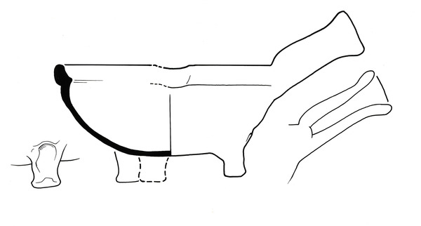 | 4b vorm | bolle steelkom, kleine geknikte rand met dekselgeul, poten |