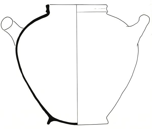 | 4b vorm | bolle voorraadpot met hoge schouder zonder hals, kraagrand, standring |
