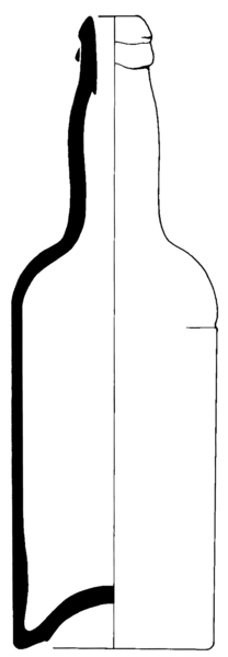 | 4b vorm | cilindrische tweedelig vormgeblazen wijnfles met lange hals, met afgewerkte lip, opgebolde bodem |