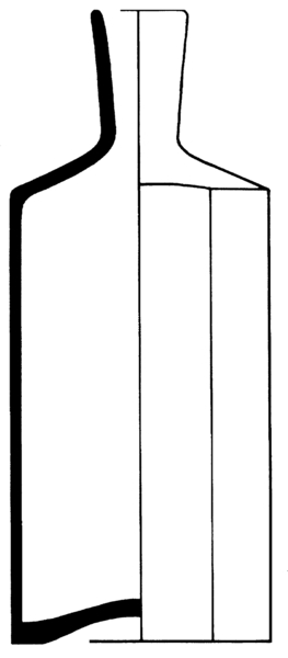| 4b | parfumfles met twee platte- en twee afgeronde zijden, licht conische hals, contactvorm met naden, ook tekst in reliëf, standring of standvlak |