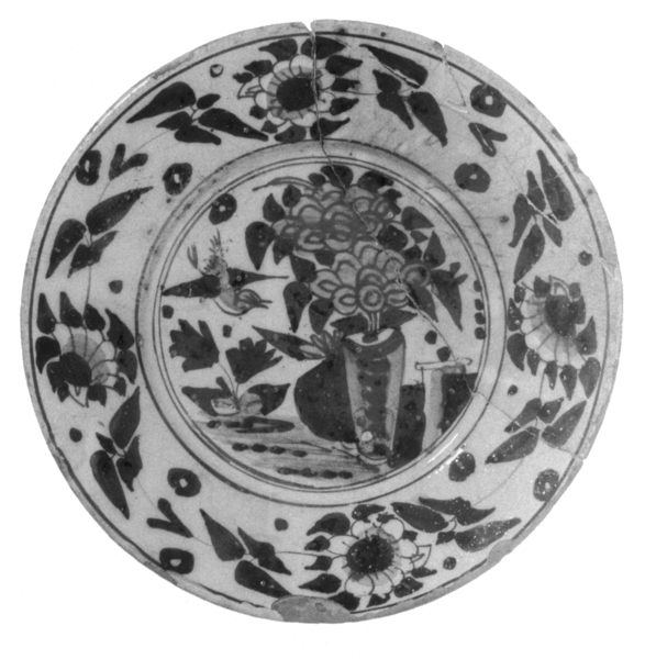 | 5c decoratie | blauw, vlag: bloemen; spiegel: vaas met bloemen en vliegende vogel inwendig blauw |