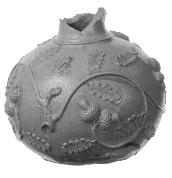 | 5b afwerking (kleur/glazuur) | inwendig zoutglazuur, uitwendig ijzerengobe met zoutglazuur |