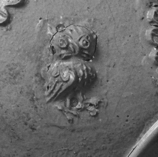 | 5c decoratie | uitwendig: eikenblad met eikels, uil op tak |