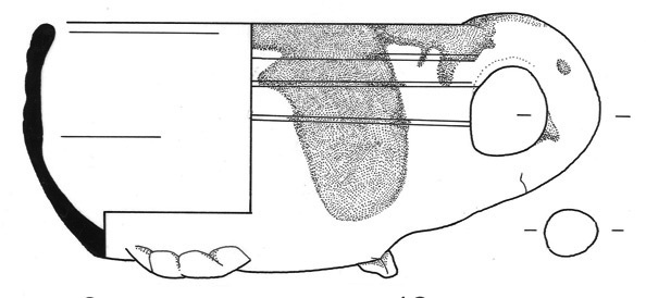 | 4b vorm | bolle kop met rechte tot iets naar binnen gebogen rand, lobvoeten |