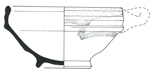 | 4b | kop met scherpe knik bodem-wand, rechte wand met naar binnen afgeschuinde rand, standring |