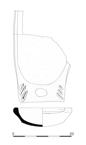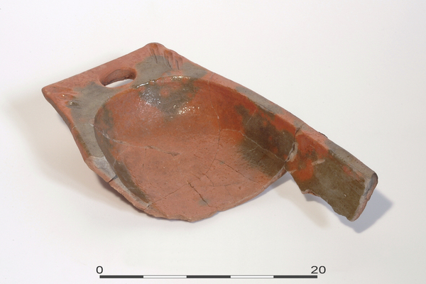 | 4b | langwerpige vetvanger met schenkgeul aan ene korte zijde en 'vissenstaart-vormige' andere korte zijde met ophangoog of -ogen, zonder steel |