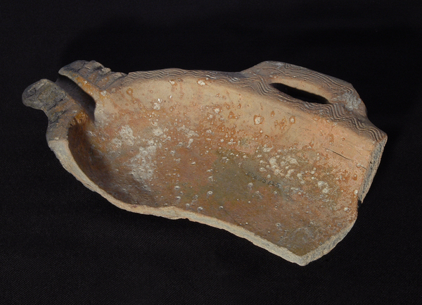 | 4b | langwerpige vetvanger met schenkgeul aan ene korte zijde en 'vissenstaart-vormige' andere korte zijde met ophangoog of -ogen, zonder steel |