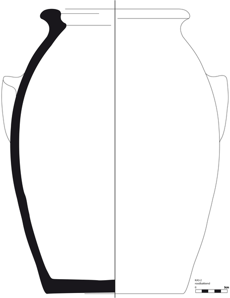 | 5c | witte slib versiering: horizontale brede baan langs hals, verticale dunne banen met 'laddersporten' |