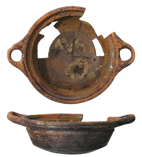 | 4b | lage kachelpan met afgeronde buikknik en platte bodem, uitstaande kraagrand met dekselgeul |