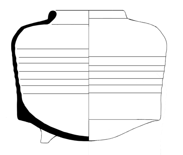 | 4b | wijde cilindrische doofpot met scherpe knik van bodem naar verticale wand, afgeronde schouder met nauwe hals en verdikte, afgeronde rand, bolle bodem op drie poten |