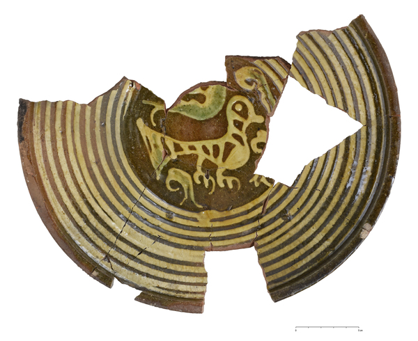 | 5c decoratie | concentrische lijnen en vogel inwendig slib (geel, groene accenten) |