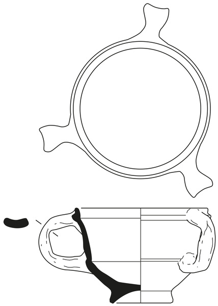 | 4b | kop met scherpe knik bodem-wand en kleine kraagrand met dekselgeul, standring |
