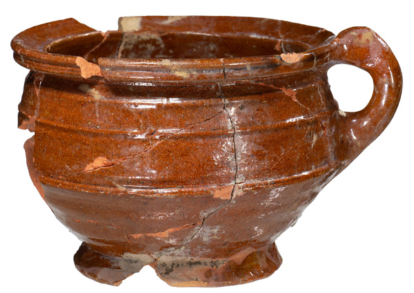 | 4b | pispot met scherpe buik- en halsknik en kraagrand, standring |