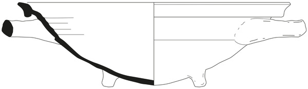 | 4b | wijde ronde test / kooltjespan met platte zijde, knik in wand, uitstaande kraagrand, poten |