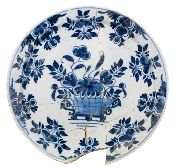 | 5c | blauw beschilderd: floraal, bloemenmand op spiegel |