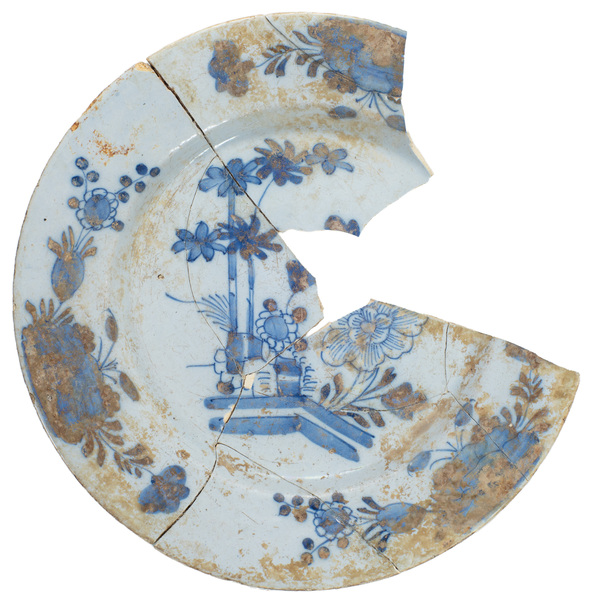 | 5c decoratie | blauw beschilderd: oosterse tuin, floraal |
