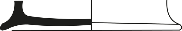 | 4b | bolle pot met uitgebogen tot naar buiten geknikte en vaak aan de zijkant aangedrukte rand, standring (imitatie Pingsdorf) |