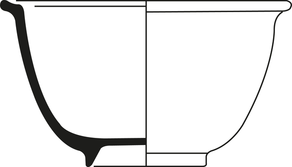 | 4b vorm | kom met steile wand en uitgebogen rand, standring |