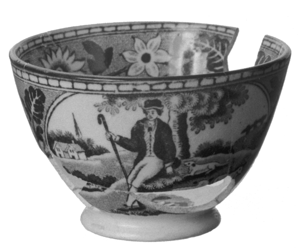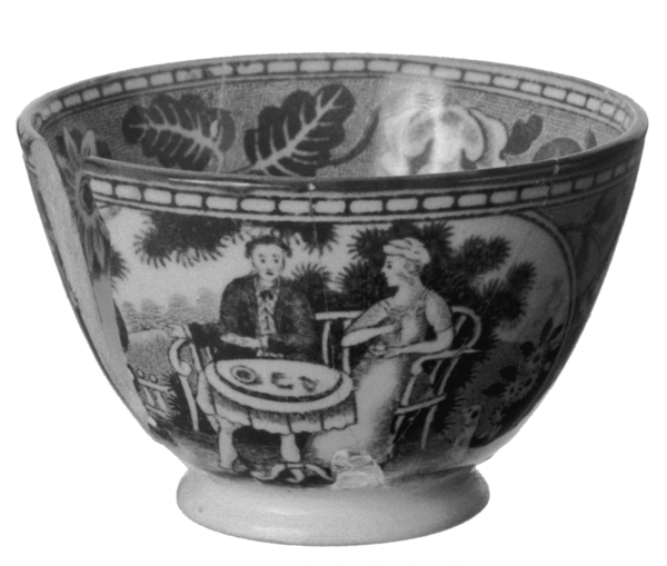 | 5c | inwendig: drukdecor in blauw: bloemen; uitwendig: drukdecor in blauw: theedrinkend paar, herder met kudde blauw |