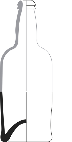 | 4b vorm | brede, cilindrische wijnfles met lange hals en afhangende schouder, halslengte is minder dan de helft van de totale hoogte van de fles, hoog opgestoken bodem met pontilmerk |